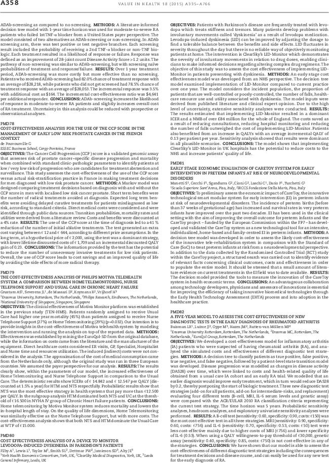 Grustam, A., Severens, H., De Massari, D., Koymans, R., & Vrijhoef, H. (2015). The Cost-Effectiveness Analysis of Philips Motiva Telehealth System: A Comparison Between Home Telemonitoring, Nurse Telephone Support And Usual Care In Chronic Heart Failure. Value in Health (Vol. 18). doi:10.1016/j.jval.2015.09.681 |