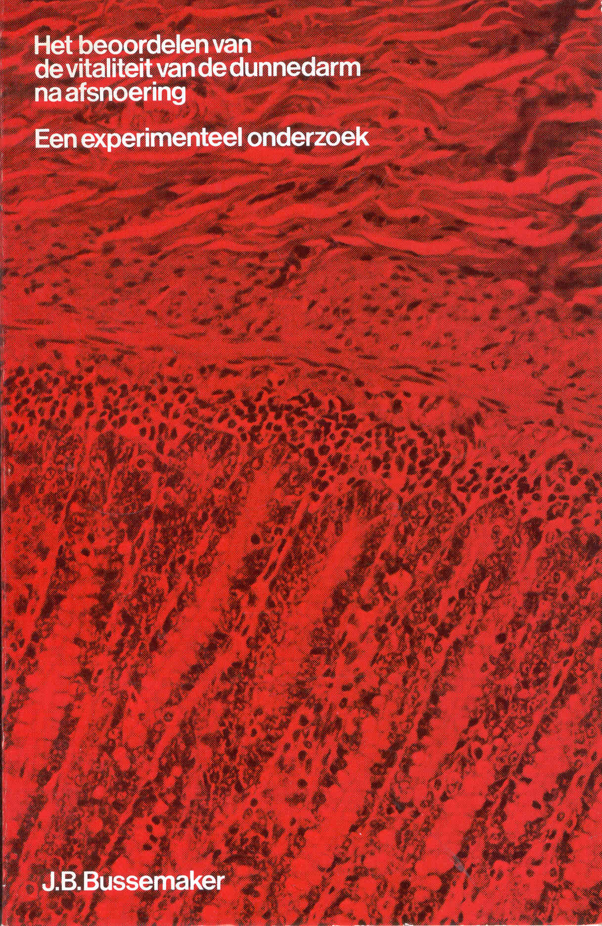 Bij afsnoering van een gedeelte van de dunne darm geraakt de patiënt in een levensgevaarlijke situatie, waarbij chirurgisch ingrijpen altijd noodzakelijk is. Soms lijkt het, dat de circulatie in het aangedane gedeelte van de darm zich kan herstellen. De chirurg moet uiteindelijk echter beslissen, of resectie van het ischaemische gebied al dan niet dient plaats te vinden. Is slechts een kort gedeelte van de darm aangedaan, dan zal bij de minste twijfel over de vitaliteit van dat gedeelte tot resectie worden over· gegaan, waarbij het verwijderen van 10 of 20 cm darm meer of minder van weinig belang is. Als echter een groot gedeelte van de darm moet worden gereseceerd, kunnen soms afhankelijk van de lengte van het dunne darmgedeelte - resorptiestoornissen worden verwacht. De beslissing over de plaats van de transsectie van de darm kan in ~mike gevallen zeer moeilijk zijn: resectie van 50 cm dunne darm of minder kan dan voor de morbiditeit en eventueel mortaliteit van de patiënt doorslaggevend zijn. Het tijdens de operatie beoordelen van de vitaliteit van het darmweefsel geschiedt, conventioneel uitgevoerd, op grond van zorgvuldige observatie en palpatie. Deze wijzen van beoordelen voldoen in de praktijk, zeker bij het beoordelen van korte afgesnoerde segmenten, redelijk goed. Maar toch ontstaan in een niet onaanzienlijk aantal gevallen na dunne darm afsnoering complicaties, als gevolg van perforatie of stenose. Er is maar weinig onderzoek gedaan naar de mate van zekerheid die pcr-operatoire observatie en palpatie biedt. Het is heel wel denkbaar, dat met deze werkwijzen vaak teveel of onnodig wordt gereseceerd. Terwijl het ook mogelijk is dat, ten onrechte, niets of te weinig darmweefsel wordt weggenomen. Bij het beoordelen van de vitaliteit van een lang afgesnoerd gedeelte van de dunne darm, kunnen deze werkwijzen mogelijk aanleiding geven tot te uitgebreide resecties resulterend in resorptiestoornissel). In de literatuur zijn een aantal methoden beschreven, die tot doel hebben de vitaliteit van de dunne darm op meer objectieve wijze te beoordelen, maar deze hebben in de kliniek nauwelijks ingang gevonden. De resultaten die ermee worden verkregen, voldoen klaarblijkelijk niet beter dan de resultaten verkregen bij zorgvuldige observatie en palpatie. Mogelijk zijn zij ook voor klinisch gebruik te omslachtig. In dit experimentele onderzoek is getracht de conventionele werkwijzen op hun waarde te schatten en deze tevens te vergelijken met twee meer objectieve methoden om de vitaliteit van de darm te beoordelen.