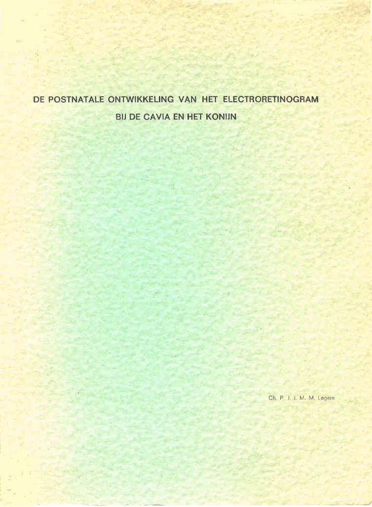 Legein, C. P. J. J. M. M. (1969, June 5). De postnatale ontwikkeling van het electroretinogram bij de cavia en het konijn. Retrieved from http://hdl.handle.net/1765/26550 |