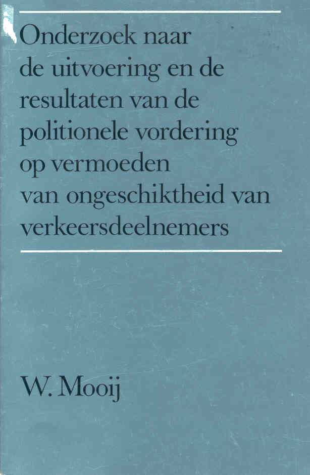 Mooij, W. (1975, January 8). Onderzoek naar de uitvoering en de resultaten van de politionele vordering op vermoeden van ongeschiktheid van verkeersdeelnemers. Retrieved from http://hdl.handle.net/1765/31315 |