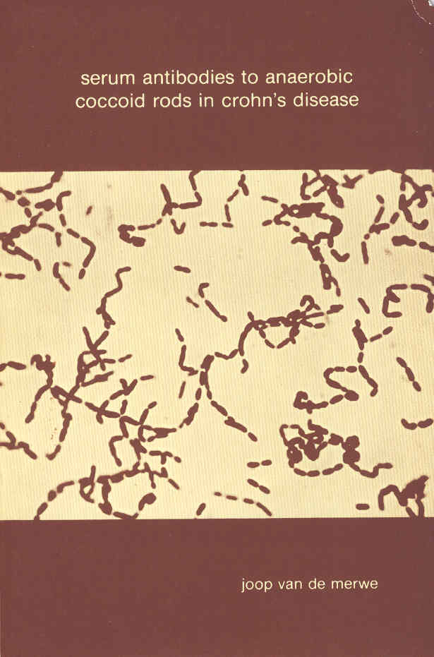 The faecal flora of patients with Crohn's disease has been found to differ from that of healthy subjects in that the numbers of anaerobic gramnegative rods and of gram-positive coccoid anaerobes, belonging to species of Eubacterium and Peptostreptococcus were higher. The flora composition was independent of duration of illness and was not influenced by ileocaecal resection. Serum agglutinins against some strains of coccoid rods were found in a considerable percentage of patients with Crohn's disease, whereas percentages of positive sera were much lower in healthy subjects and in patients with various diseases. The interpretation of these data established by Wensinck and the use of the agglutination reactions as a diagnostic test are the subject of this thesis. In Chapter 2 recent microbiological and immunological findings in patients with Crohn's disease are reviewed. They show that in Crohn's disease as well as in other intestinal diseases, like ulcerative colitis, antibodies to dietary and microbial antigens are found frequently. In Chapter 3 results are presented of investigations on the prevalence of agglutinins to four strains of anaerobic coccoid rods in patients with Crohn's disease, ulcerative colitis, a number of other diseases and in healthy subjects. Antibodies to coccoid rods were found much more frequently in Crohn's disease than in ulcerative colitis and other diseases. Using the interpretation of agglutination reactions as described in Chapter 7, the percentage of false positive results of sera submitted for diagnosis was found to be satisfactorily low. The data in Chapter 4 show that the presence of antibodies to the coccoid rods in patients with Crohn's disease is correlated with colonic disease, the presence of fistulae and with serum immunoglobulin levels. No correlation was found between antibodies and any index of disease activity.