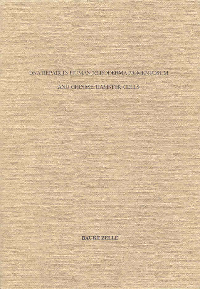 An important feature of living cells is their capacity to maintain the integrity of their hereditary material, the DNA. DNA can be damaged by a variety of physical and chemical agents, among which ultraviolet radiation (UV), ion1z1ng radiation and chemical carcinogens as 4-nitroquinoline-1-oxide (4NQO). Most organisms, including man, are able to repair damaged DNA. The DNA repair processes play a very important role, which is demonstrated by the inherited skin disease xeroderma pigmentosum (XP). This disease is manifested primarily by cellular atrophy, pigmentation abnormalities and malignancies in the sun-exposed areas of the skin. Some of the affected individuals also have neurological complications. Cells derived from most XP patients are abnormally sensitive to UV, which is ascribed to the fact that these cells show a reduced unscheduled DNA synthesis after UV-irradiation and appear to be deficient in the excision of pyrimidine dimers from their DNA. Cultured cells from another group of XP patients show a normal excision repair, but are thought to have a defect in a process associated with the circumvention of lesions present in the DNA during replication (postreplication repair). These are designated as XP variants. The clinical heterogeneity observed in this disease suggested the possibility of differences in the nature of the genetic defects in different patients (genetic heterogeneity). Genetic heterogeneity can be studied with the aid of complementation analysis, by fusion of cells derived from different patients. In several combinations the presence of the genomes of two patients in a hybrid binuclear cell resulted in a normal level of DNA repair,/ suggesting that these patients have a mutation at different sites in the genome. Excision repair-defective XP cell strains have now been classified in 7 complementation groups.
