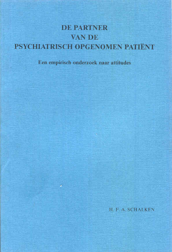 Schalken, H. (1982, October 7). De partner van de psychiatrisch opgenomen patiënt : een empirisch onderzoek naar attitudes. Retrieved from http://hdl.handle.net/1765/32075 |