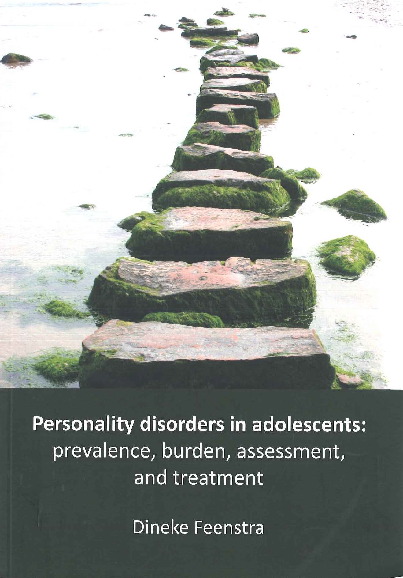 In adults, personality disorders are among the most common mental disorders in the general population (Torgersen, Kringlen, & Cramer, 2001) and patient samples (Zimmerman, Rothschild, & Chelminski, 2005). Prevalence rates vary from 13.4% in the general population, to 56.5% in treated addicted patients, and 60.4% in psychiatric outpatients (Verheul & van den Brink, 1999). Furthermore, among adults seeking specialized treatment, personality disorders are associated with low quality of life (Soeteman, Verheul, & Busschbach, 2008) and high societal costs (Soeteman, Hakkaart-van Roijen, Verheul, & Busschbach, 2008). Since the inclusion of personality disorders in the DSM-III in 1980, much research has been conducted investigating the effectiveness of treatments for these patients. Based on this literature, psychotherapy is generally considered the treatment of choice for adult patients with personality disorders (Landelijke Stuurgroep Richtlijnontwikkeling in de GGZ, 2008). Much less is known about personality disorders in adolescents. To the best of our knowledge, the study of Grilo and colleagues (1998) is the only published prevalence study among adolescent patients. Most research on personality disorders in adolescents is derived from the Children in the Community study (CIC; see for example Chen, Cohen, Kasen, & Johnson, 2006; Johnson et al., 2000; Johnson, Chen, & Cohen, 2004; Kasen et al., 2007), which was carried out in the general population. Valuable information to yield arguments in favor of reimbursing treatments for this particular patient group, like the burden of disease or costs, is virtually non-existing. Furthermore, there are almost no outcome studies available in this particular group of patients. This thesis aims to address these above mentioned issues, thereby filling in the existing gap.