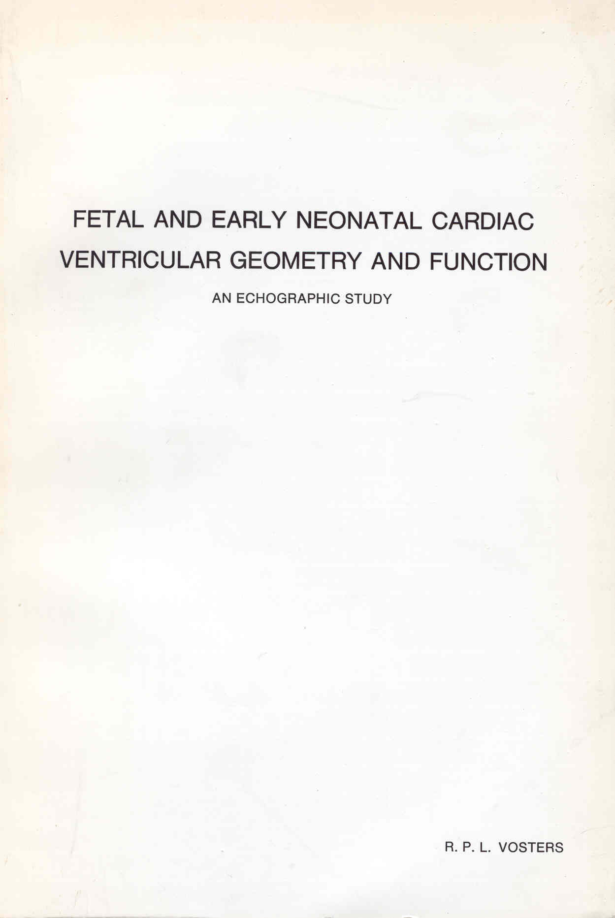 Most of our present knowledge of fetal and neonatal cardiovascular anatomy and function is derived from chronic and acute lamb experiments. The disadvantage of these experiments is that many physiologic functions were influenced by the surgery and anaesthesia. By using ultrasound techniques it is possible to study the human fetal and neonatal heart under physiologic conditions. In the study, described in this thesis, the possibility o~ using M-mode registration to accurately and reproducibly measure ventricular size and intraventricular septal thickness in fetal and neonatal hearts during various periods of the cardiac cycle was investigated. If this is so 1 these H-mode registrations will lead to a greater insight into fetal and neonatal cardiac ventricular geometry and funtion under physiologic and pathophysiologic circumstances
