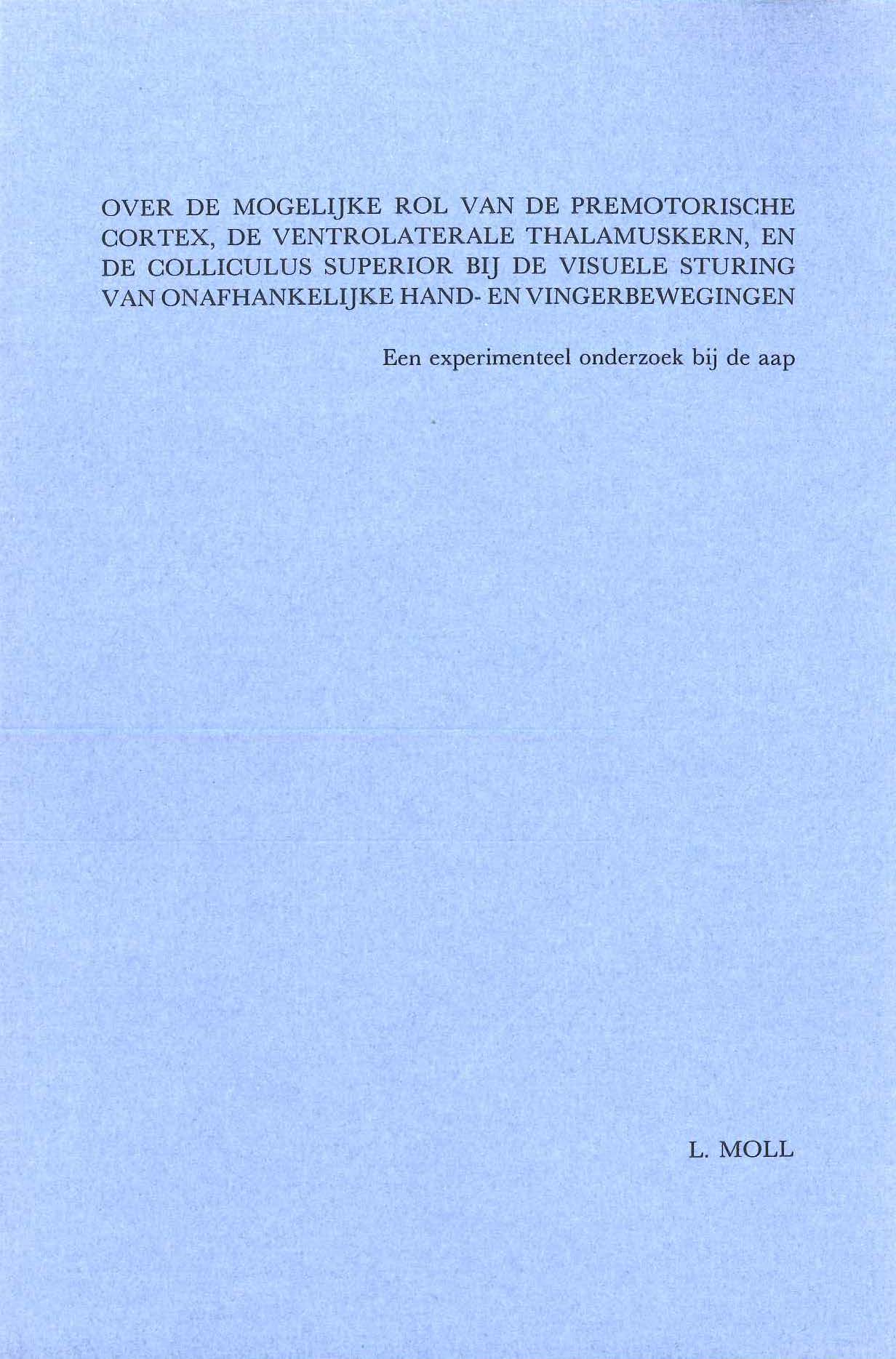 Over de mogelijke rol van de premotorische cortex, de ventrolaterale thalamuskern, en de colliculus superior bij visuele sturing van onafhankelijke hand- en vingerbewegingen : een experimenteel onderzoek bij de aap