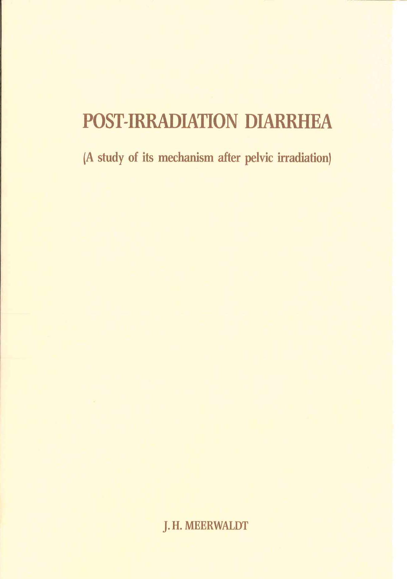 Meerwaldt, J. (1984, June 20). Post-irradiation diarrhea : (a study of its mechanism after pelvic irradiation). Retrieved from http://hdl.handle.net/1765/38540 |