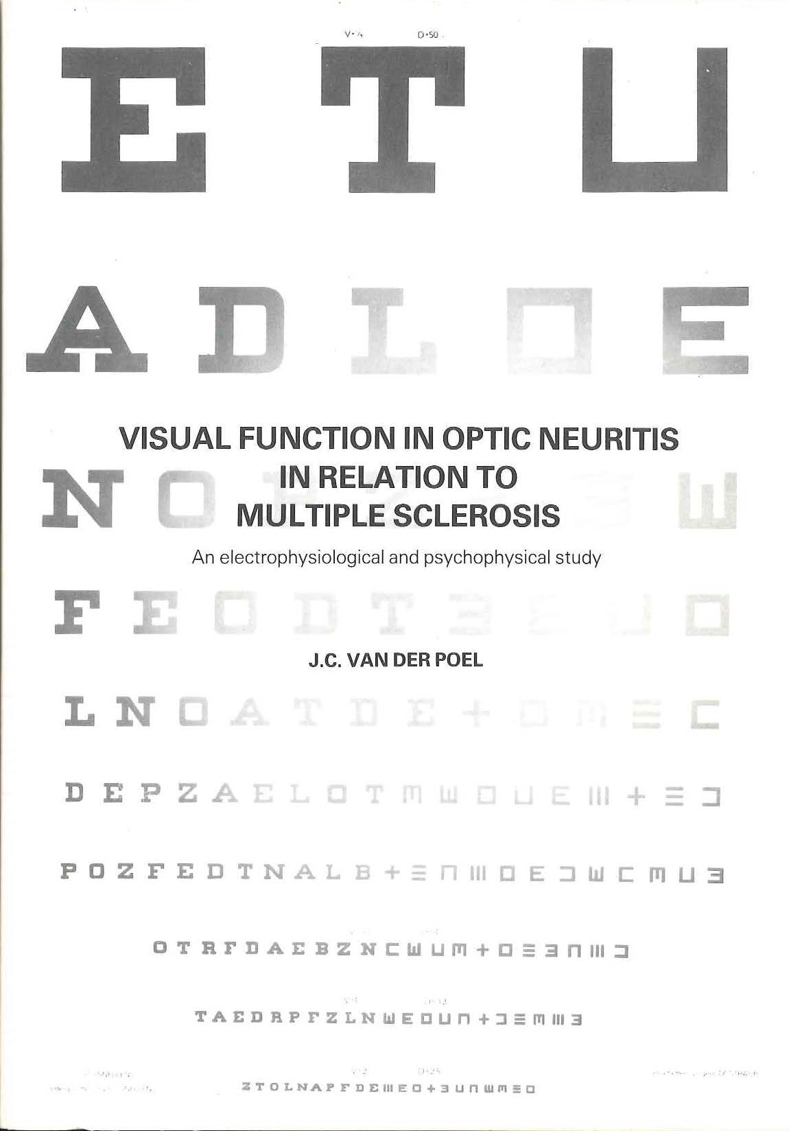 van der Poel, J. C. (1985, October 9). Visual function in optic neuritis in relation to multiple sclerosis : an electrophysiological and psychophysical study . Retrieved from http://hdl.handle.net/1765/38763 |