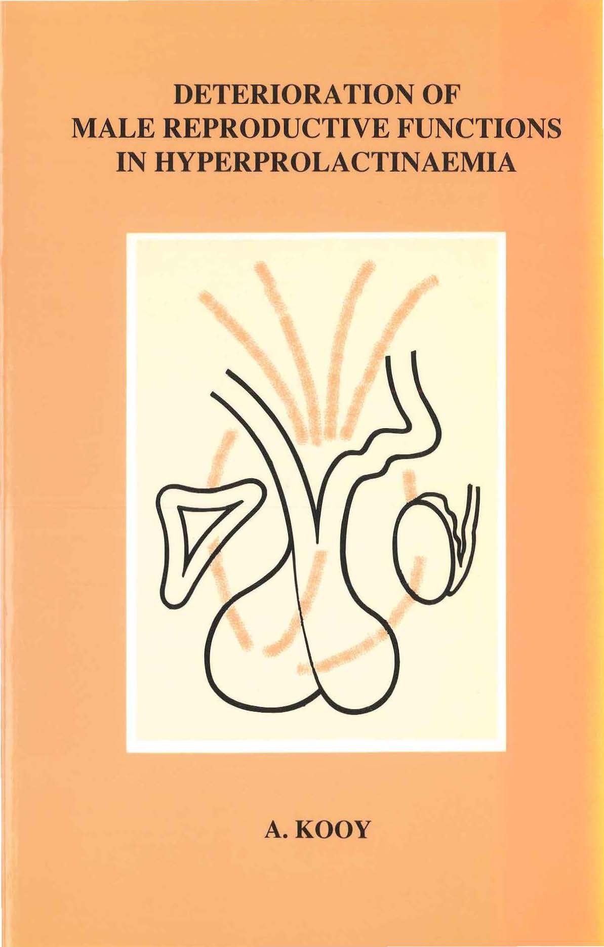 Since the early seventies, chronic hyperPRLaemia due to hypothalamic-pituitary disorders, drug abuse, hypothyroidism or other causes, has been recognized as a cause of reproductive dysfunctions in both women and men. Possible mechanisms by which PRL exerts its effects on male reproductive functions have been extensively studied during the last two decades, but the mode of PRL action on reproductive functions has not been clarified by these studies. Mter an introduction on the physiological significance of PRL in vertebrates and the possible molecular processes involved in PRL action (chapter I), experimental models are discussed to study the effects of hyperPRLaernia on male reproductive functions in the rat (chapter II). This animal was used in the experiments presented in this thesis, because of the resemblance between the effects of hyperPRLaernia observed in rats and humans. During the experiments, the transplantable PRL-secreting tumour 7315b was employed as an experimental model to induce high serum PRL levels (2000- 5000 ng/rnl), comparable to those found in humans with hyperPRLaernia-associated impotence. Preceding the presentation of the data obtained from the experiments discussed in this thesis (chapters IV, V, VI, VII and VIII), male reproductive dysfunctions during hyperPRLaernia in the rat are reviewed (chapter III). Subsequently, aims and questions which are dealt with in this thesis are described.