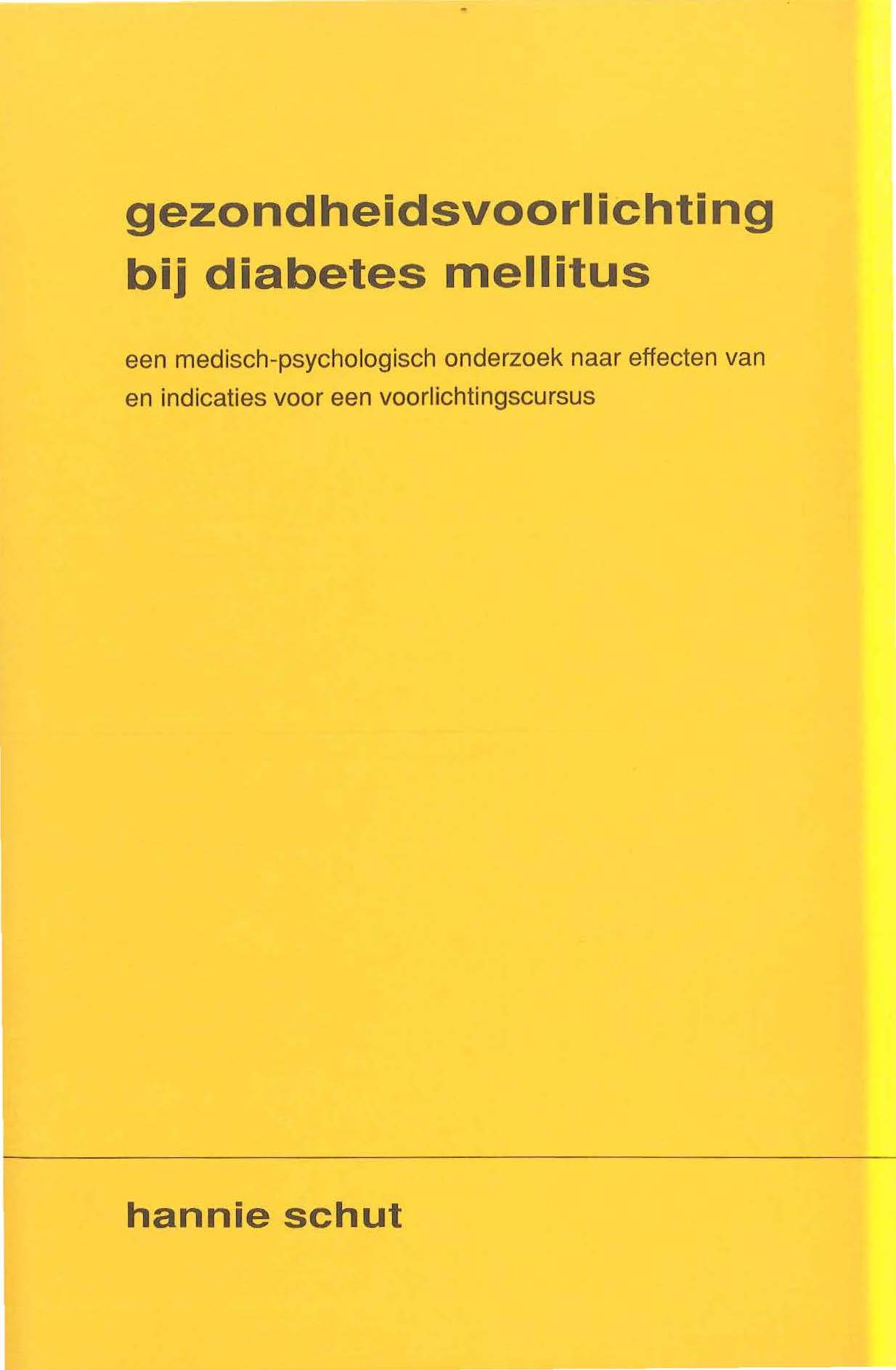 Gezondheidsvoorlichting bij diabetes mellitus : een medisch-psychologisch onderzoek naar effecten van en indicaties voor een voorlichtingscursus