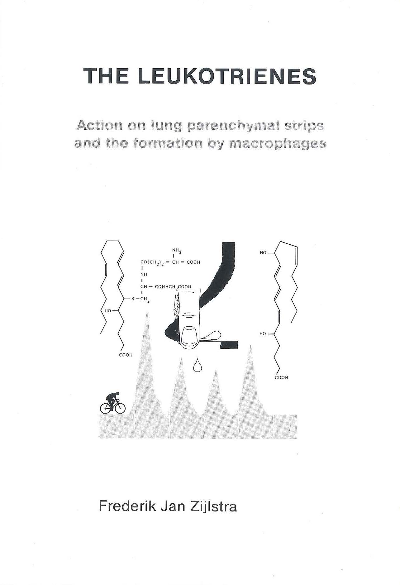 In this thesis the history, biosynthetic pathways and biological activities of leukotrienes is being reviewed. Their contractile effects on lung parenchymal strips and their formation by macrophages are investigated. In addition the action of specific synthesis inhibitors is determined. These two approaches were chosen , firstly to investigate the mechanism of action of these potent bronchoconstrictive agents and secondly to determine the capacity of cells to generate the whole cascade of arachidonic acid products, to which leukotrienes belong. Leukotrienes belong to the so-called eicosanoids , which also comprise the group of prostaglandins and mono-hydroxy eicosatetraenoic acids. The results presented in chapters 3 and 4, show that the three main groups of eicosanoids have different biological effects and are able to interact with each other.
