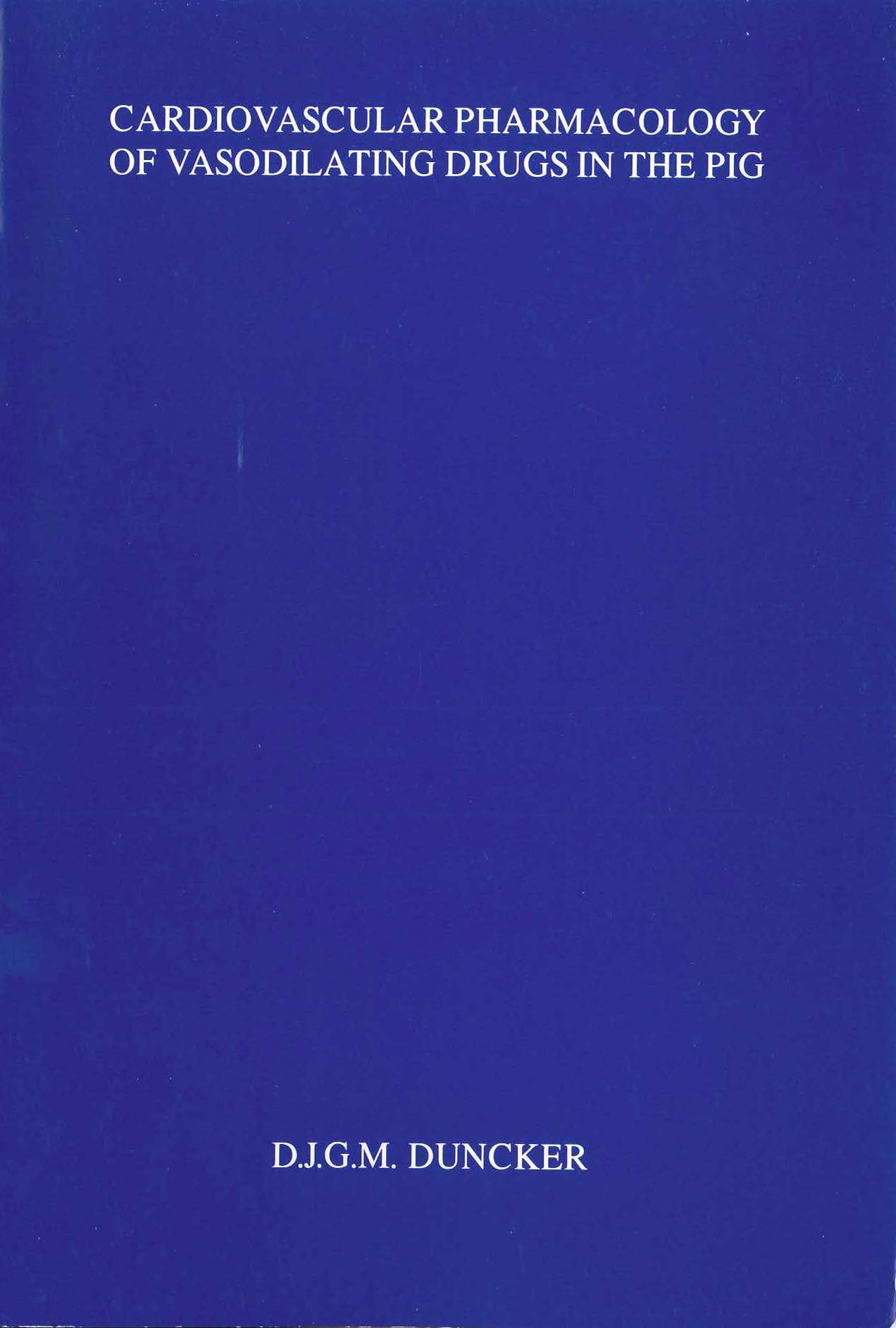 In this thesis the cardiovascular pharmacological actions of a number of vasodilating drugs have been studied and compared in pigs. Firstly, we compared the vasodilator profile of the dihydropyridine-derivatives nisoldipine, nimodipine and nifedipine and also studied the claimed preference of nisoldipine for the coronary circulation (Kazda et al., 1980; Serruys et al., 1985; Drexler et al., 1986b) and of nimodipine for the cerebral circulation (Kazda et al., 1982) (chapters 2-5). Secondly, since the perfusion of organs and tissues may be compromised in several pathological disorders for which vasodilating drugs might be employed (ischemic heart disease, heart failure, hypertension), we compared the vasodilator profiles of the dihydropyridinederivatives nisoldipine and nimodipine with those of pimobendan, UD-CG 212 CL and nicorandil after intravenous administration in anesthetized pigs (chapters 6-9). Thirdly, in view of the potentially useful combination of vasodilators and 13-adrenoceptor antagonists to reduce h;,rpotension -induced baroreceptor reflex-mediated tachycardia, we compared the systemic hemodynamic actions of the different vasodilating drugs in conscious pigs in the absence or presence of 13-adrenoceptor blockade (chapters 9-11). Finally, the long-held view that vasodilation in ischemic myocardium is maximal (see Berne and Rubio, 1979) and, therefore, vasodilators may induce coronary "steal" (Weintraub et al., 1981; Gross and Warltier, 1981; Gewirtz et al., 1984), may not hold true. Recently, vasodilator therapy has been shown to induce an improvement of perfusion and function of ischemic myocardial areas by recruiting vasodilator reserve (Gorman. et al., 1984; Heusch and Deussen, 1984; Aversano and Becker, 1985; Canty and Klocke, 1985; Pantely et al., 1985). In view of these new findings, lending support to the possible usefulness of vasodilator drugs in myocardial ischemia, we investigated the effects of nisoldipine on perfusion of myocardium distal to a fixed concentric coronary artery stenosis in conscious pigs (chapter 12). In. addition, the possible anti-ischemic action of this drug was studied during myocardial ischemiainduced in animals subjected to treadmill-exercise (chapter 13).