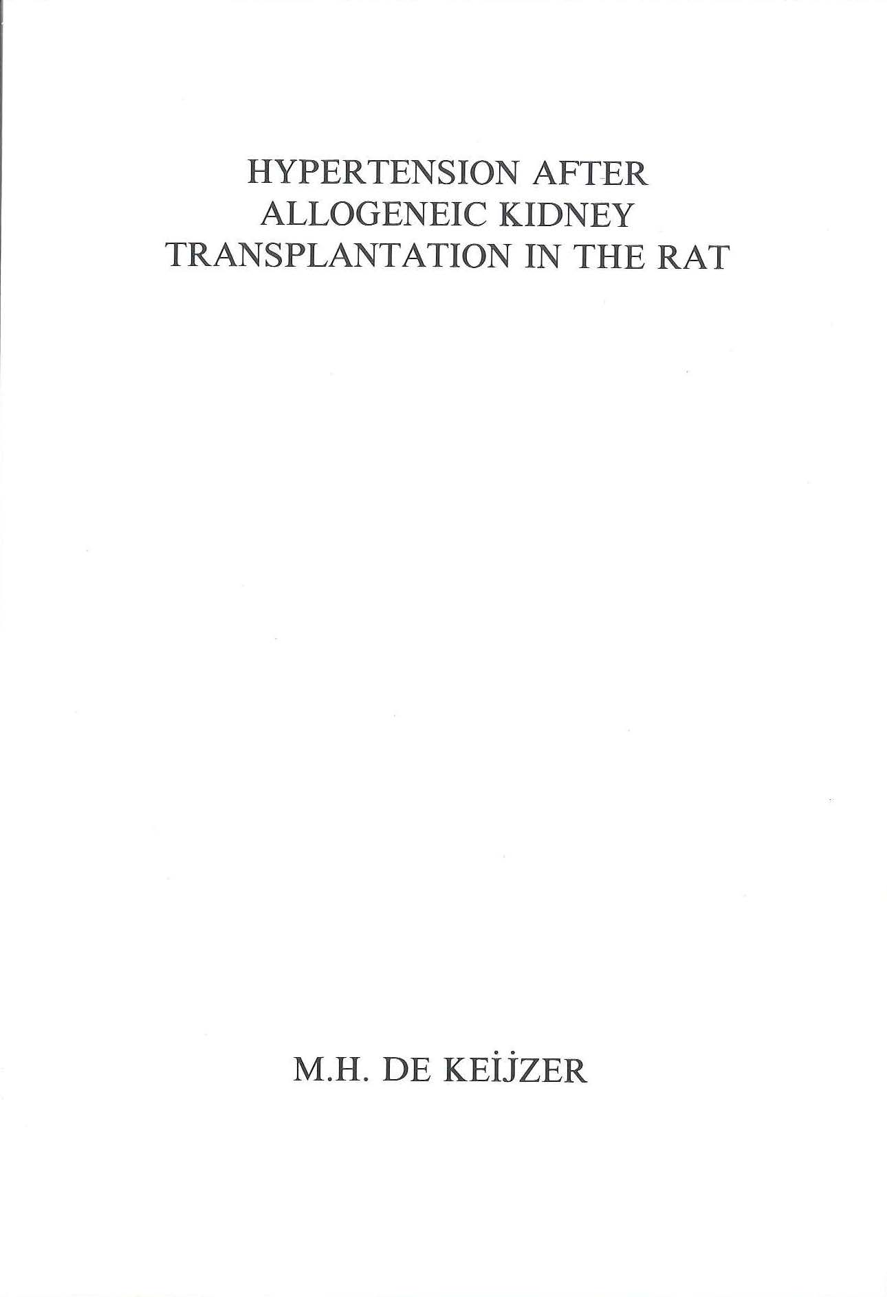With the use of cadaver donors, the number of kidney transplantations is growing rapidly. The total number for the whole world is estimated at over 100.000. Half of these transplantations are performed in Europe. For the Netherlands the total number of renal transplantations carried out until the end of 1985 amounts to 3.000. Out of these 3.000, nearly 200 involved children under 15 years of age. In the unnatural situation of allogeneic kidney transplan- I tation, where surgeons are attempting to contravene nature by inserting foreign proteins into an unwilling host, unusual compensatory host mechanisms may take place. One of these mechanisms is the development of post-renal transplantation hypertension. Although a successful renal allograft may cure hypertension, it is now recognized that there is an alarmlingly high incidence of hypertension in transplanted patients. In this situation hypertension poses diagnostic and therapeutic problems in many patients. A variety of factors may be responsible for the genesis of blood pressure elevation in the post-transplantation period, but an analysis of the importance of the various factors is very problematic in humans. The aim of the present experiments was to develop a model in rats in which post-transplantation hypertension could be studied. This model was used to reveal the mechanisms causing the hypertension after kidney transplantation in the rat and then to find ways to prevent this post-transplantation hypertension in rats.