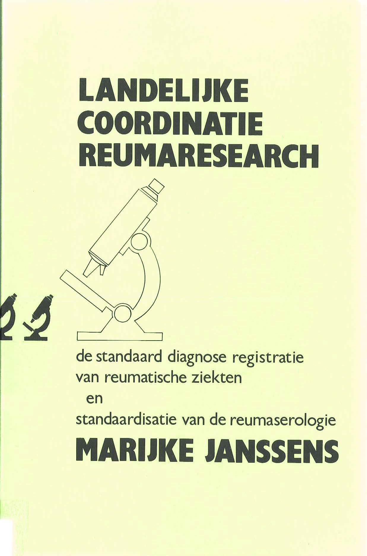 Landelijke coördinatie reumaresearch : de standaard diagnose registratie van reumatische ziekten en standardisatie van de reumaserologie