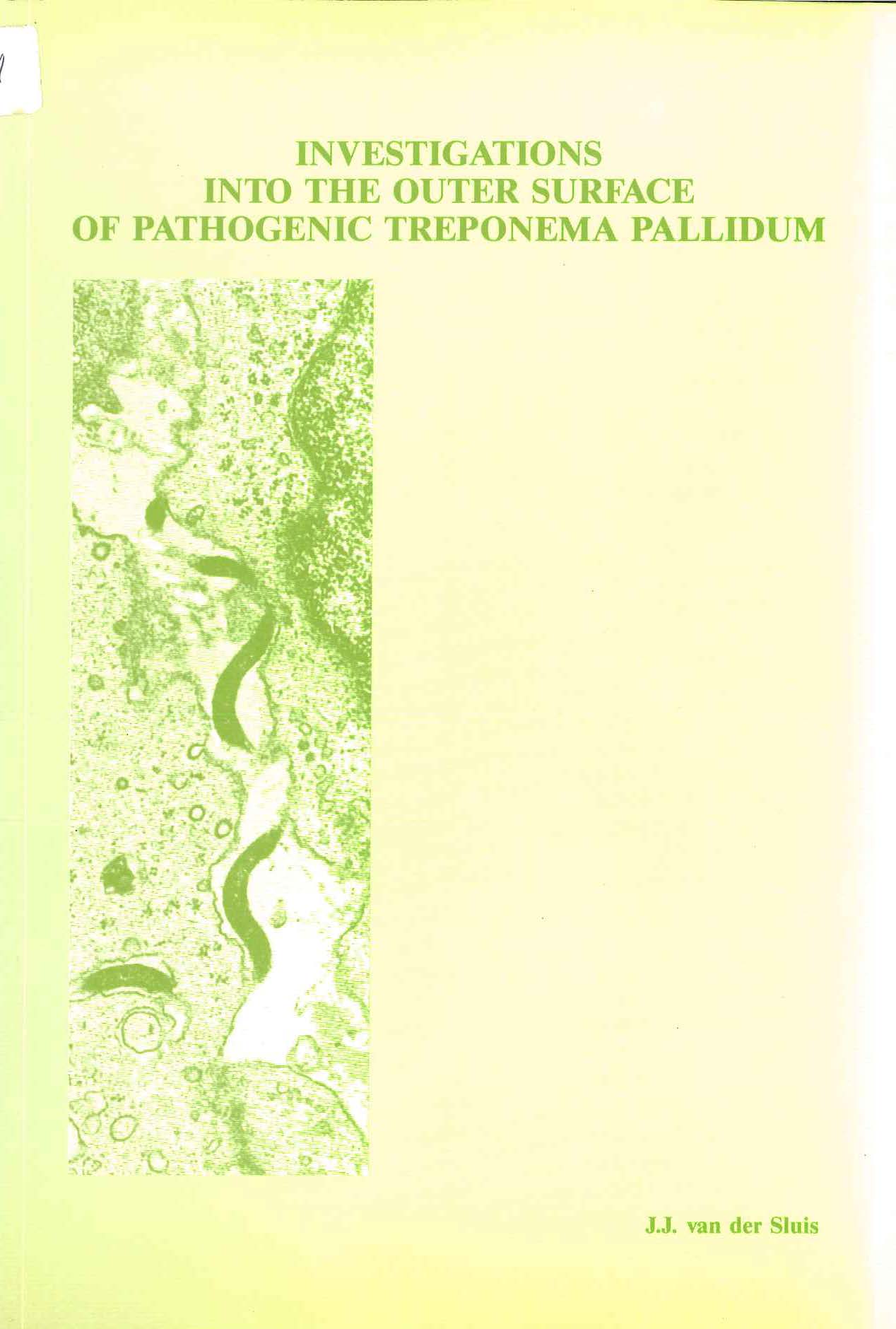 van der Sluis, J. J. (1987, December 4). Investigations into the outer surface of pathogenic Treponema pallidum. Retrieved from http://hdl.handle.net/1765/51208 |