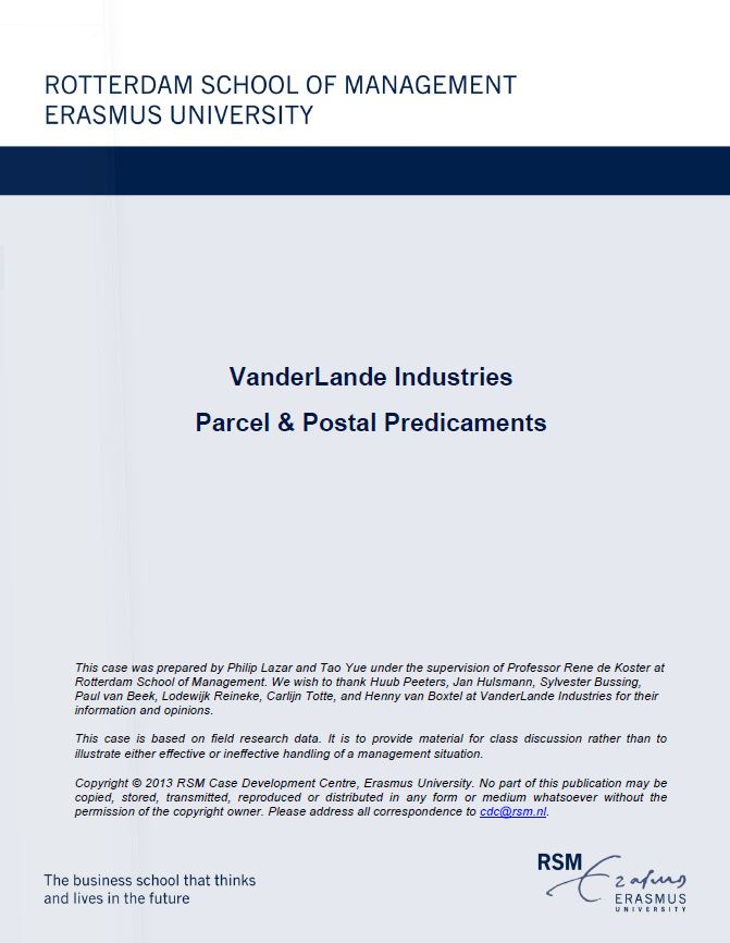 Lazar, P., Yue, T., & de Koster, R. (2014). Vanderlande Industries: Parcel & Postal Predicaments. RSM Case Development Centre. Retrieved from http://hdl.handle.net/1765/51724 |