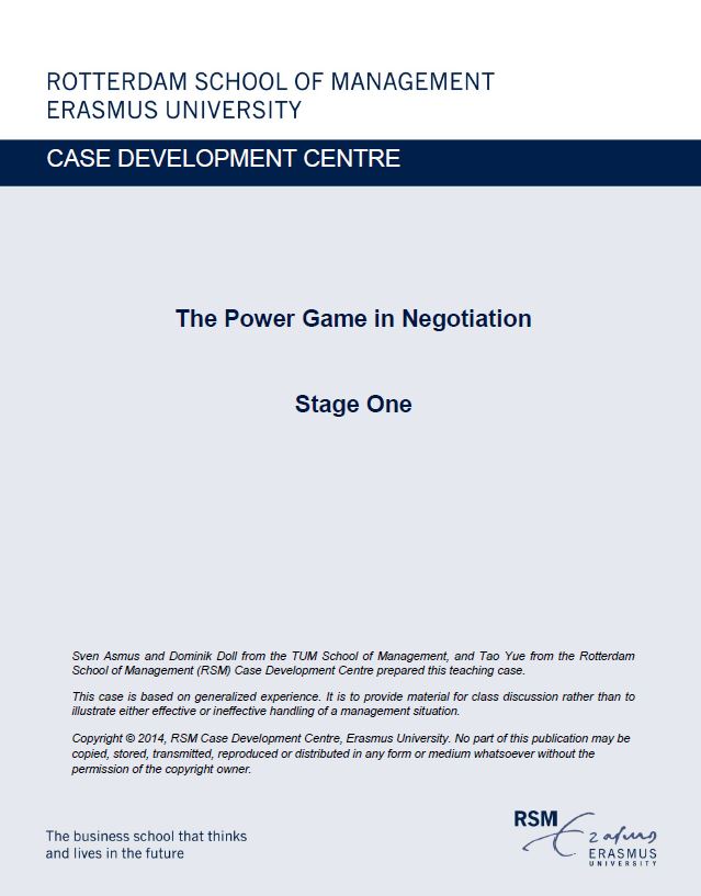 Asmus, S., Doll, D., & Yue, T. (2014). The Power Game in Negotiation (Stage 1). RSM Case Development Centre. Retrieved from http://hdl.handle.net/1765/51726 |