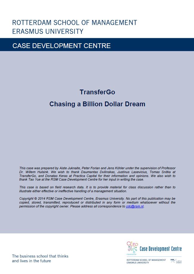 Juknaite, A., Florian, P., Köhler, J., & Hulsink, W. (2015). TransferGo: Chasing a Billion Dollar Dream. RSM Case Development Centre. Retrieved from http://hdl.handle.net/1765/77529 |
