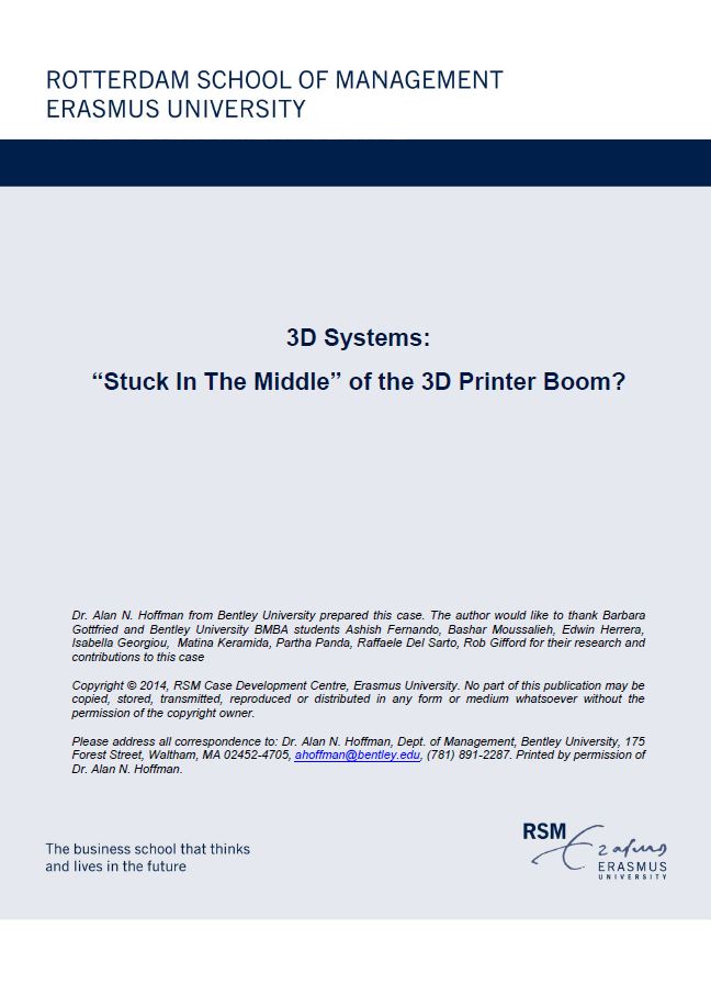 Hoffmann, A. (2014). 3D Systems: ‘Stuck in the Middle’ of the 3D Printer Boom?. RSM Case Development Centre. Retrieved from http://hdl.handle.net/1765/77952 |