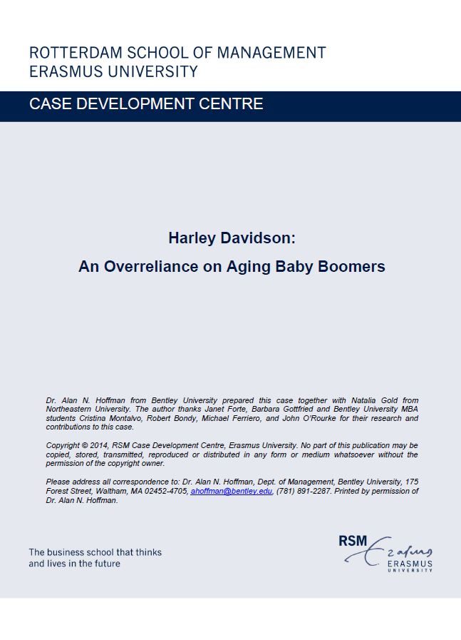 Hoffmann, A., & Gold, N. (2013). Harley Davidson: An Overreliance on Aging Baby Boomers. RSM Case Development Centre. Retrieved from http://hdl.handle.net/1765/77953 |
