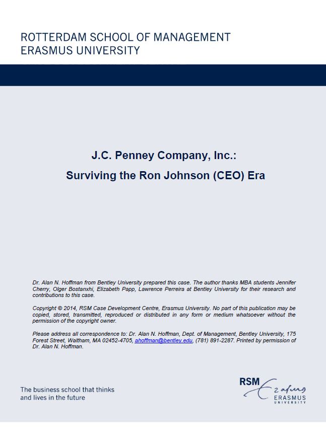 Hoffmann, A. (2013). J.C. Penney Company, Inc.: Surviving the Ron Johnson (CEO) Era. RSM Case Development Centre. Retrieved from http://hdl.handle.net/1765/77956