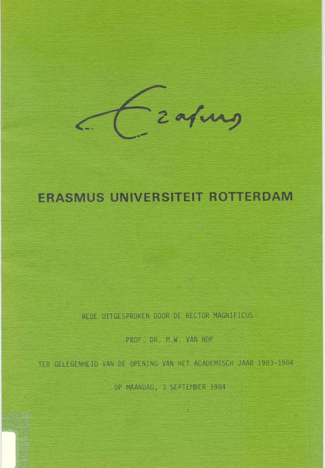 Rede uitgesproken door de rector magnificus prof. dr. M.W. van Hof, ter gelegenheid van de opening van het academisch jaar 1983- 1984 op maandag 3 september 1984