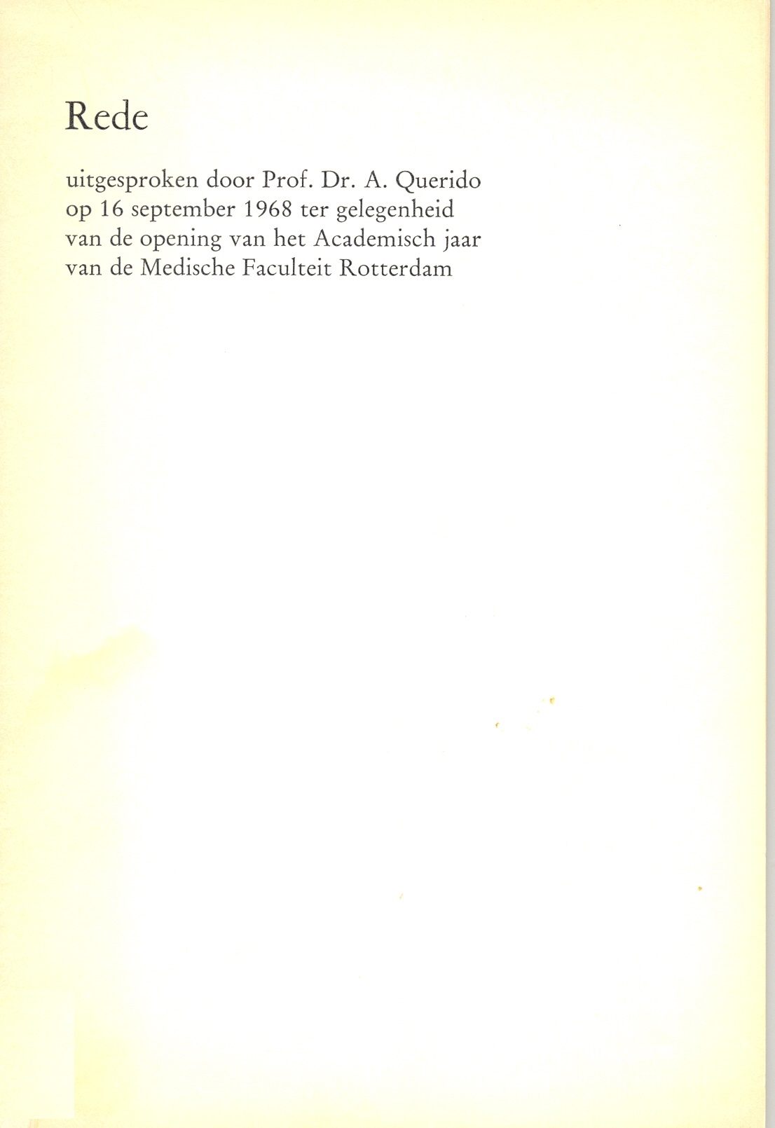 Rede uitgesproken door Prof. Dr. A. Querido op 16 september 1968 ter gelegenheid van de opening van het Academisch jaar van de Medische Faculteit Rotterdam