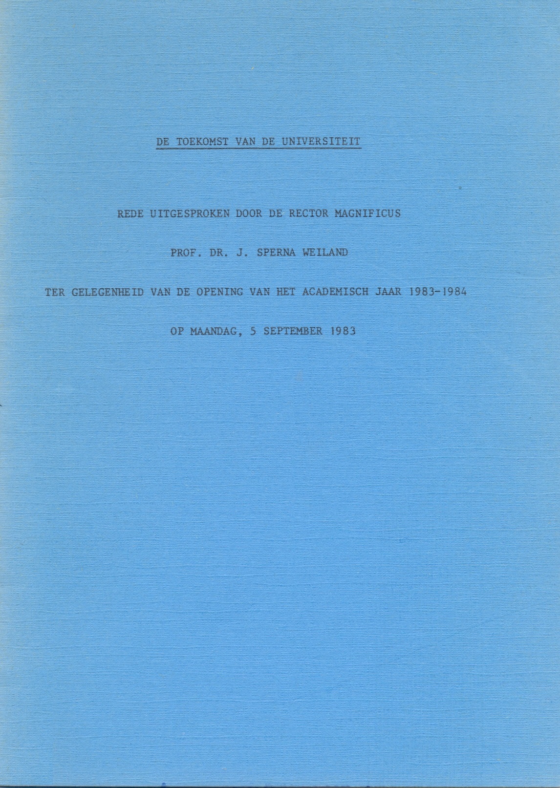 Rede uitgesproken door de rector magnificus prof. dr. J. Sperna Weiland ter gelegenheid van de opening van het Academisch Jaar, 1983-1984 op maandag, 5 september 1983
