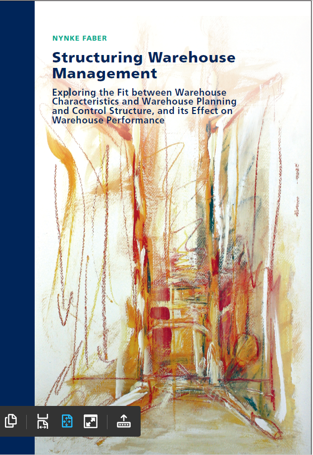 Faber, N. (2015, September 17). Structuring warehouse management: Exploring the fit between warehouse characteristics and warehouse planning and control structure, and its effect on warehouse performance (No. EPS-2015-336-LIS). ERIM Ph.D. Series Research in Management. Retrieved from http://hdl.handle.net/1765/78603 |